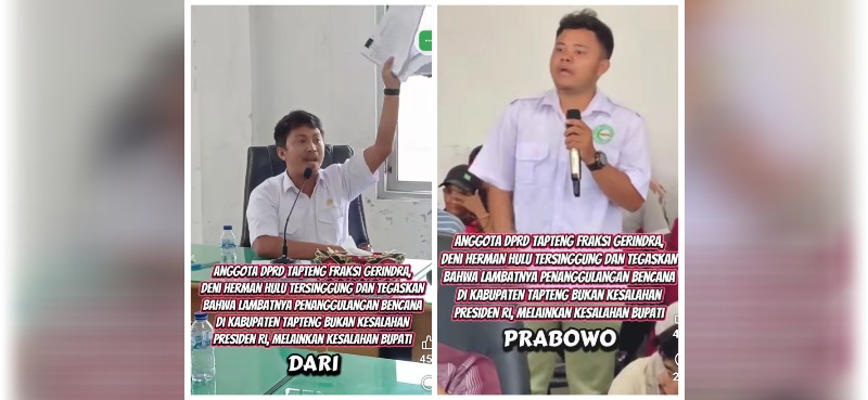 “Saya ingatkan persoalan amburadulnya pendataan dan penyaluran bantuan di Kabupaten Tapanuli Tengah ini bukan salah Pak Presiden Prabowo Subianto. Anggaran untuk bencana itu sudah ada. Namun Bupati Masinton yang tidak menandatangani data-data,” tegas Deni Herman Hulu.