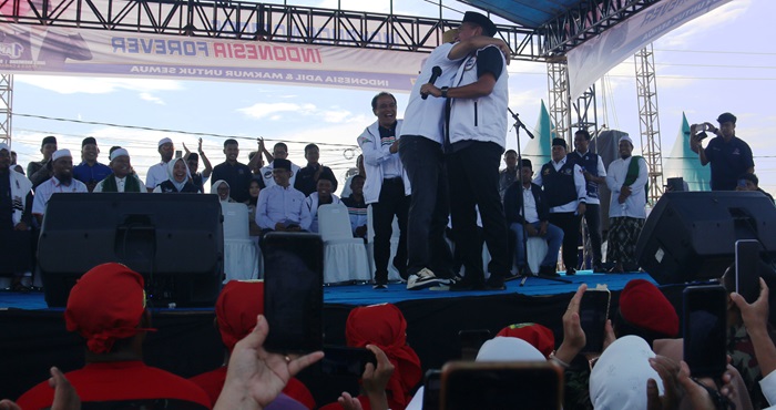 Di mana Ketua Tim Kampanye Daerah (TKD) Pasangan Anies-Muhaimin, Edy Rahmayadi berpelukan dengan Juru Bicara Nasional Pasangan Anies-Muhaimin, Bakhtiar Ahmad Sibarani disakasikan langsung oleh Anies Rasyid Baswedan dan ribuan warga masyarakat Tapanuli Tengah yang memadati kediaman Bakhtiar Sibarani.
