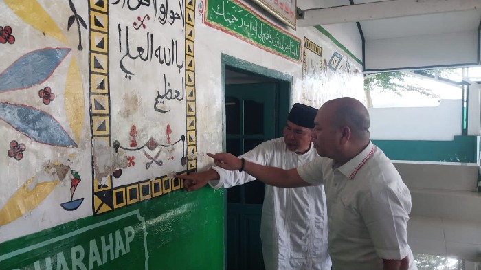 Di dinding tersebut juga ada simbol-simbol tauhid, yang dibuat sendiri Syekh Zainal Abidin Harahap, sebagai syiar agama yang beliau ajarkan kala itu. “Ada gambar timbangan, sebagai pengukur yang bermaknya keseimbangan antara amal dan kehidupan kita,” tuturnya lagi.